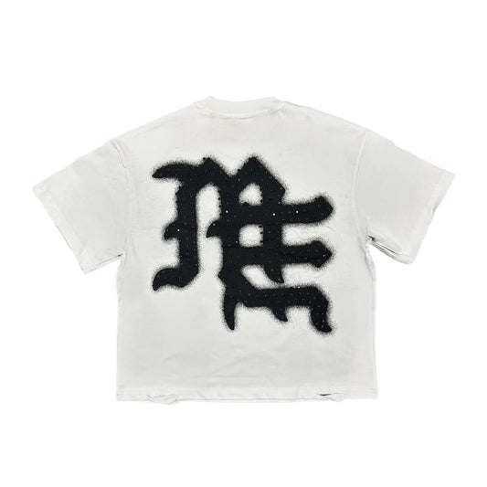 Mixed Emotion End Rhinestone Tee White